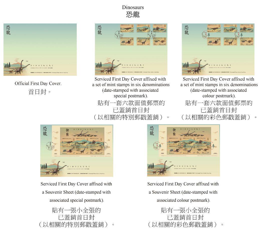 恐龍是地球迄今最受矚目的神秘物種之一,早在二億三千萬年前已出現,直到六千六百萬年前滅絕,在地球生活了一億六千多萬年。自19世紀發現恐龍化石以來,古生物學家一直致力研究,期望能了解這些史前生物的真實面貌,探索由恐龍稱霸的遠古世界。香港郵政以「恐龍」為題,發行一套6枚郵票、一張郵票小全張及相關集郵品。