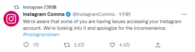 社交網站Instagram今日(31日)突將大批賬戶停權,相關賬戶在停權期間,不會對其他IG用戶顯示,有關用戶亦無法使用該賬號。不同國家網民紛紛在Twitter上反映該情況。Instagram官方賬戶今晚回應事件指,已關注到相關情況,現正跟進事件,並就所造成的不便致歉。