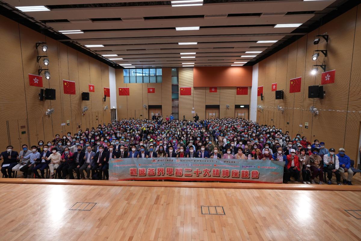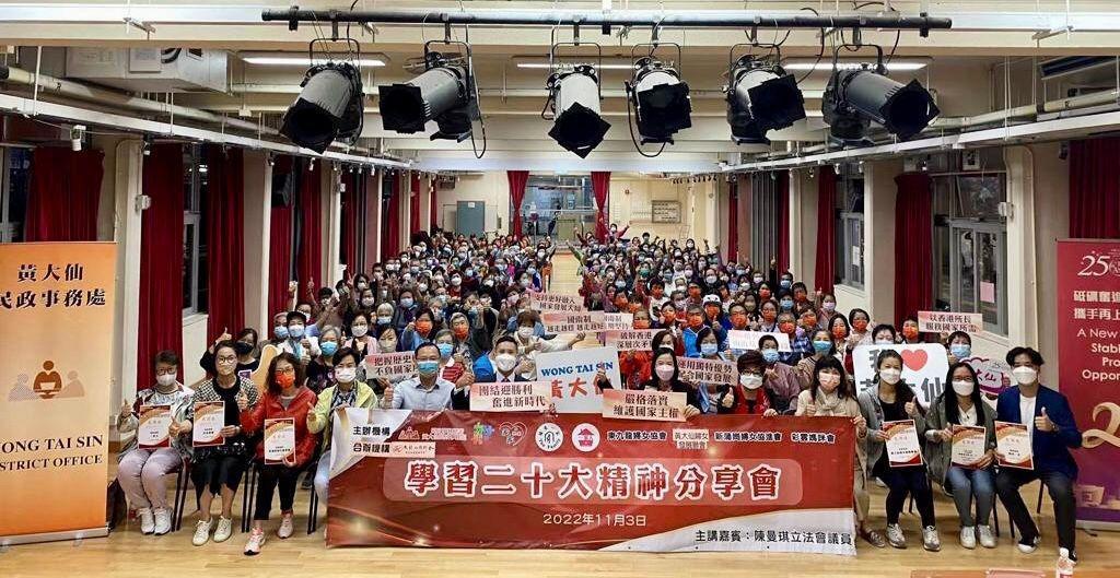 繼10月舉辦5場座談會後,黃大仙民政事務處今日亦聯同九龍社團聯會黃大仙地區委員會、東九龍婦女協會、左鄰有你、一家人、新采櫻姿、新蒲崗婦女協進會、彩雲媽咪會、緣來一家及家家樂園,在黃大仙社區中心舉辦「學習二十大精神分享會」,邀請港區全國人大代表及立法會議員陳曼琪為主講嘉賓,她指出「一國兩制」是中國特色社會主義的偉大創舉,必須長期堅持。香港要發揮背靠祖國、聯通世界的重要和獨特的作用,同時以人民為中心,提高人民生活品質。黃大仙民政事務專員黃智華、九龍社團聯會黃大仙地區委員會主任何漢文,以及九龍社團聯會黃大仙地區委員會副主任梁騰丰亦在會上發言,並與參加者交換看法。座談會有約230人出席,與會者包括黃大仙區地區團體領袖及居民。