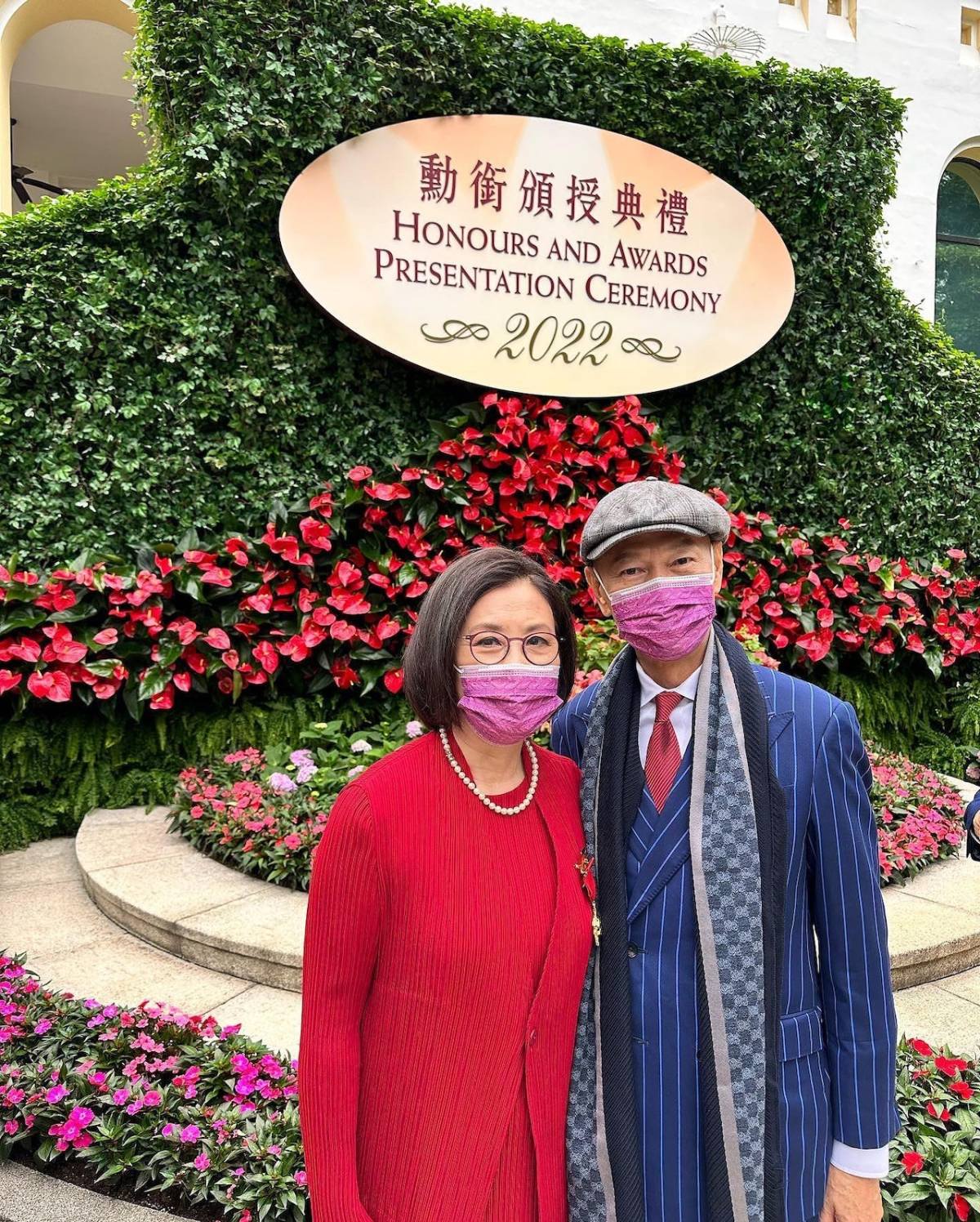 2022勳銜頒授典禮今日(5日)舉行,75歲的阿姐汪明荃今年獲頒金紫荊星章。汪明荃身穿紅色套裝,在先生羅家英陪同下出席典禮。