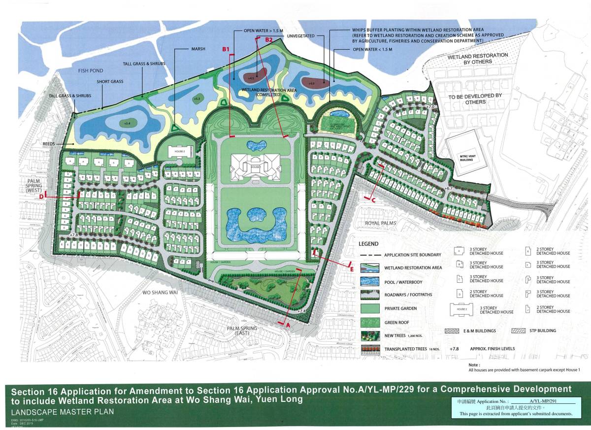 涉及元朗和生圍項目,由恒大於2019年初自恒地手上以47.05億元購得,有消息指經過補地價程序,最終交割價近42億元。翻查資料,發展商原計劃將該項目分4期興建,提供268座洋房,總住宅樓面約89.3萬平方呎,包括興建一座樓面面積近25萬平方呎的「皇宮屋」。