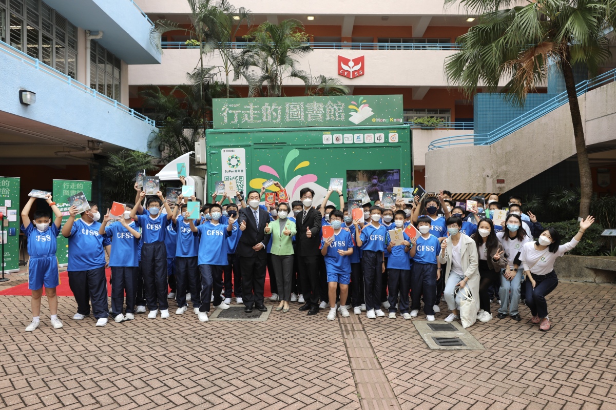 走遍香港,推廣閱讀,服務民生。聯合出版集團及旗下SUPer青年營推展的2022年度「行走的圖書館」公益閱讀活動,今日(7日)上午在中華基金中學舉辦啟動儀式。由11月7日起至18日,「行走的圖書館」流動圖書車會將香港三聯書店、香港中華書局、香港商務印書館、萬里機構、新雅文化及中和出版等多間知名出版社捐贈的近萬種優質圖書,送至港九新界各區中小學校,與在校師生分享閱讀樂趣。