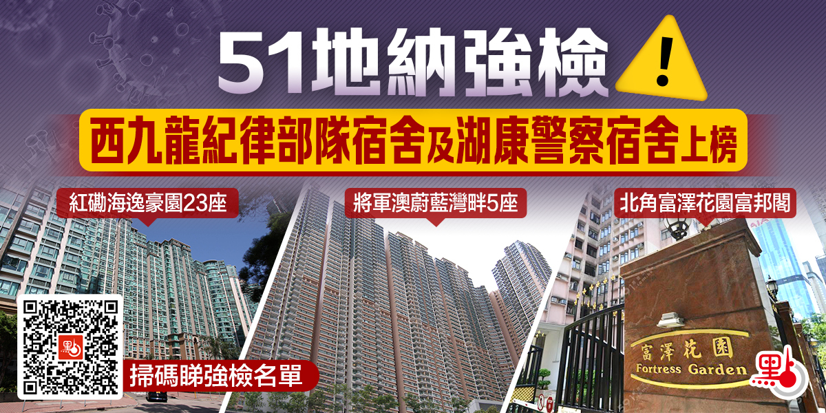 本港第五波疫情持續,衞生署衞生防護中心公布,截至今日(7日)零時,本港過去一日新增5198宗確診個案,包括4634宗本地確診個案及564宗輸入個案。政府今晚發出強制檢測公告,要求於指定期間曾身處以下51個指明地方的人士,須在11月8日及9日接受核酸檢測。