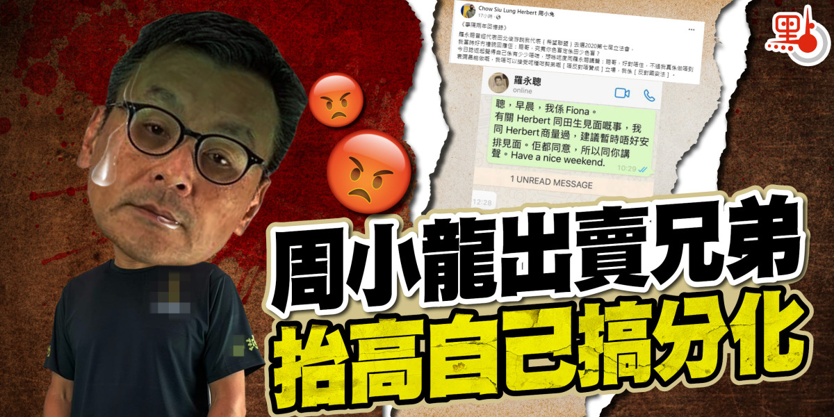 已走佬的撐暴商人、Chickeeduck公司老闆周小龍,近日又在社交平台刷存在感,接連發出所謂「事隔兩年回憶錄」的帖文,當中大爆其老友、公共事務顧問羅永聰曾遊說佢投靠田北俊,參選2020年立法會選舉喎,出賣兄弟之餘,仲乘機凸顯其「黃絲」身份,繼續搞破壞及分化。