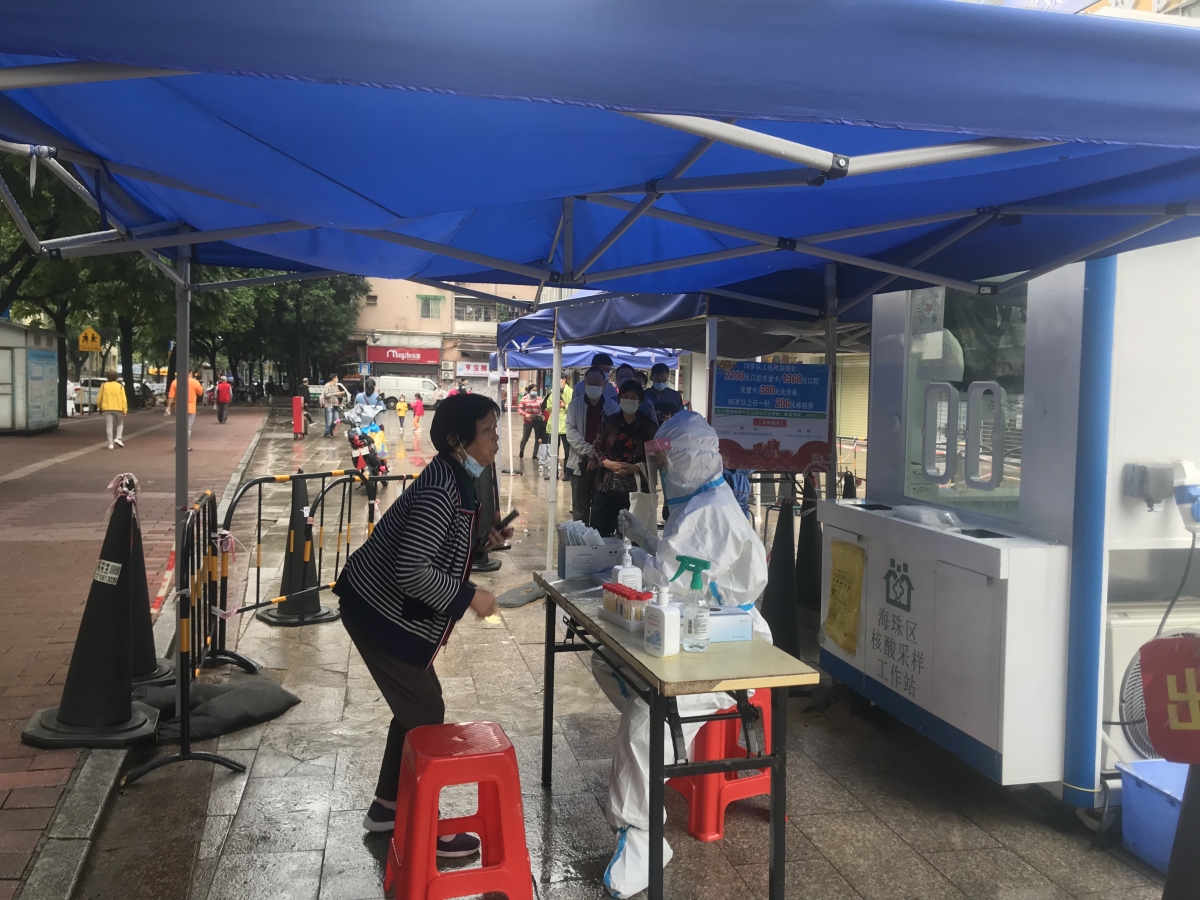 目前,廣州仍然存在社區傳播陽性個案。廣州市疾控中心新聞發言人張周斌昨日在記者會上表示,連日來海珠區新增感染者數量較多,一是由於管理難度大,在海珠區人口高度聚集的風險區域內,沒有能夠完全靜下來,人員流動加速了病毒傳播;二是大量高風險人員被轉移到隔離酒店,單人單管,檢測效率也大幅度提升;三是隨着管控排查的力度不斷加大,一些之前沒有及時做核酸的人員也都被找了出來;加之病毒潛伏期短,導致這幾天感染者的數量有較大幅度的增加。