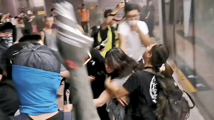 持續數分鐘後,有警員在月台尾出現,黑衣人開始散開。她見場面受控,於是走出監察亭,走入列車重置緊急掣,見車頭的幕門被打穿。其後再遭一群黑衣人包圍,而另一群人在雨傘掩護下換衣。