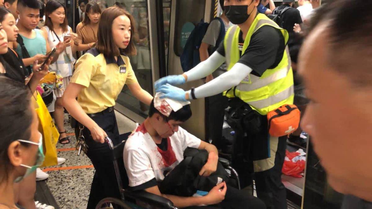 X說:「我用腳踢佢哋(黑衣人)」,希望令對方無法埋身。為求自保,他撿起地上白色硬膠喉抵擋行山杖施襲,事後發現頸部疑被行山杖刺傷。他向在場救護員求助,但沒有到醫院求醫。