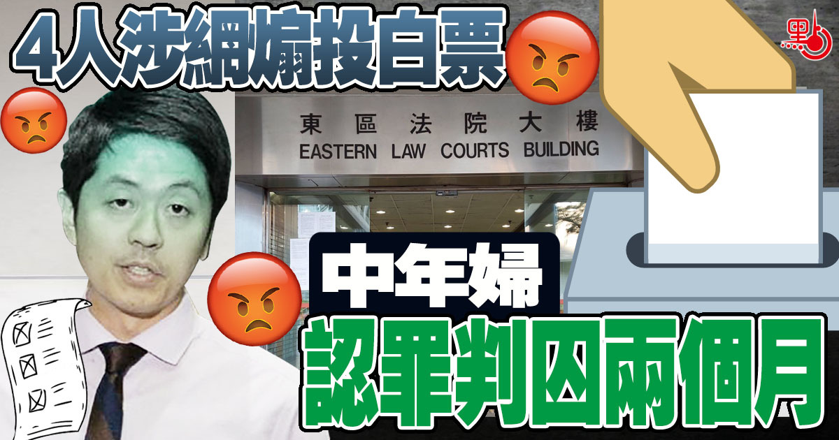4人涉嫌在2021年立法會換屆選舉期間,分別在其個人社交媒體專頁轉載或展示攬炒政棍許智峯、張崑陽、丘文俊煽惑他人選舉中投白票或不投票的帖文,被控在選舉期間內作出藉公開活動煽惑另一人不投票或投無效票的非法行為,昨日(11日)在東區裁判法院提訊。涉案的一名婦人認罪,被判監2個月,緩刑18個月,3人保釋候訊。