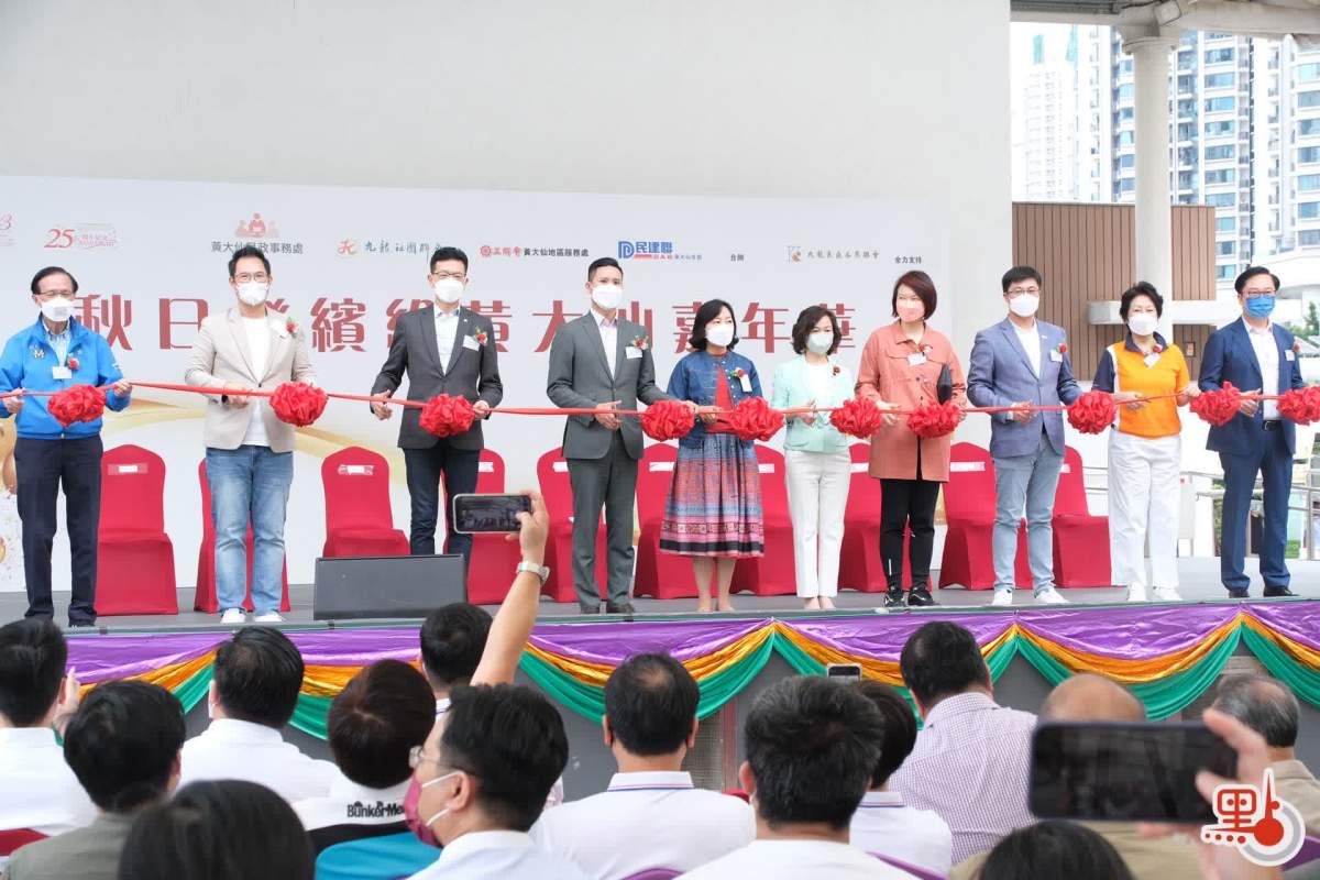 中午時分,九龍社團聯會在黃大仙廣場啟動嘉年華,啟動禮邀請到民政及青年事務局局長麥美娟及副局長梁宏正,民政事務總署署長張趙凱渝,民建聯主席李慧琼,立法會議員吳秋北、楊永傑、顏汶羽到場主禮。麥美娟表示,香港近年受到不少挑戰,在抗擊疫情的進程中,憑藉堅韌的抗疫能力,社會各層面迎來復甦,各個地區都增加了「嘉年華」等活動,希望給民眾帶來歡樂實惠的體驗。