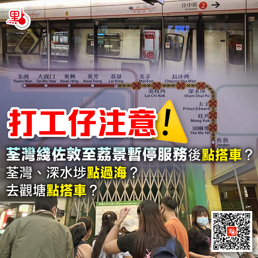 市民要過海或往九龍東多習慣搭乘荃灣綫,擔憂明早返工可能受影響。點新聞整理部分交通建議為打工仔作參考,提醒及早規劃出行,為更換線路預留時間。