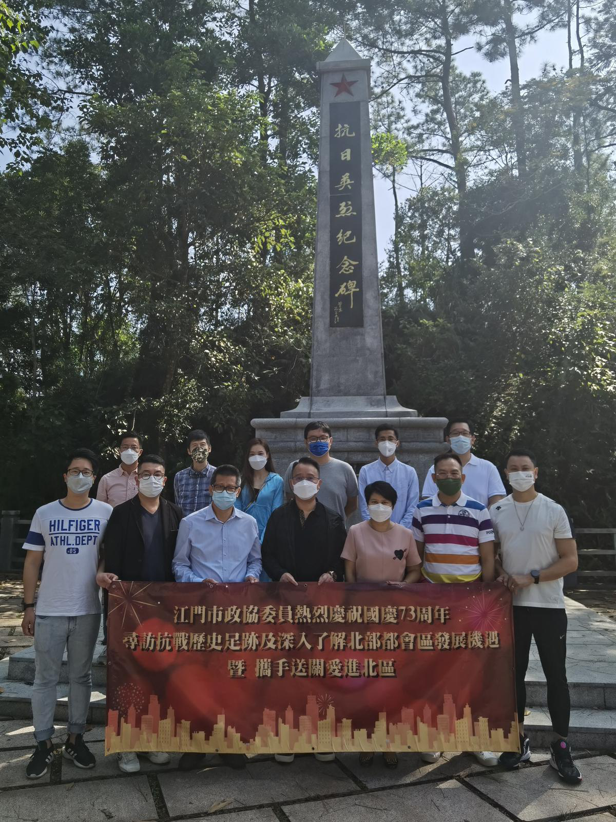 江門市政協委員會、新社聯北區地區委員會昨日(13日)合辦「熱烈慶祝中華人民共和國成立73周年尋訪抗戰歷史足跡及深入了解北部都會區發展機遇暨攜手送關愛進北區」活動。