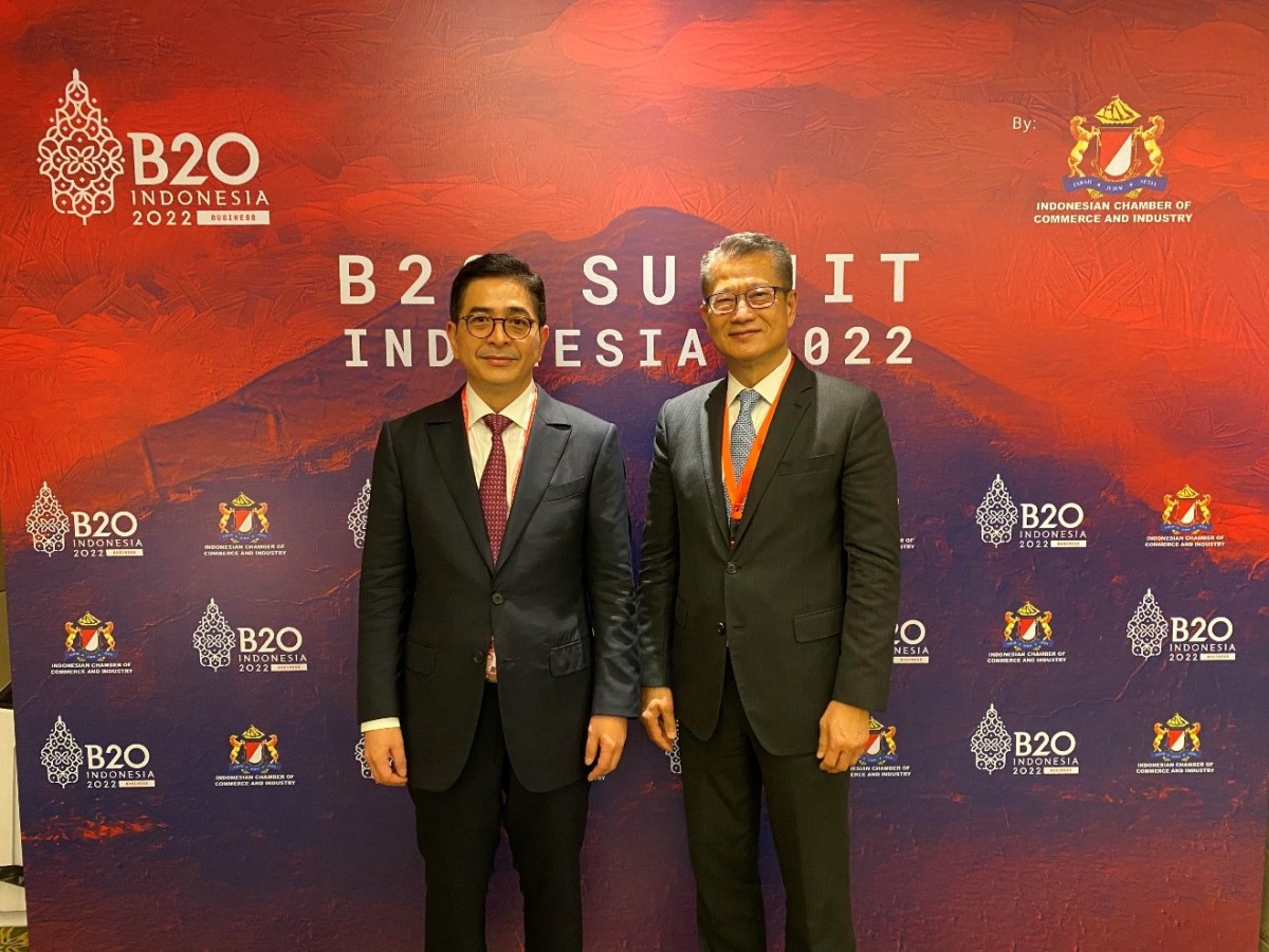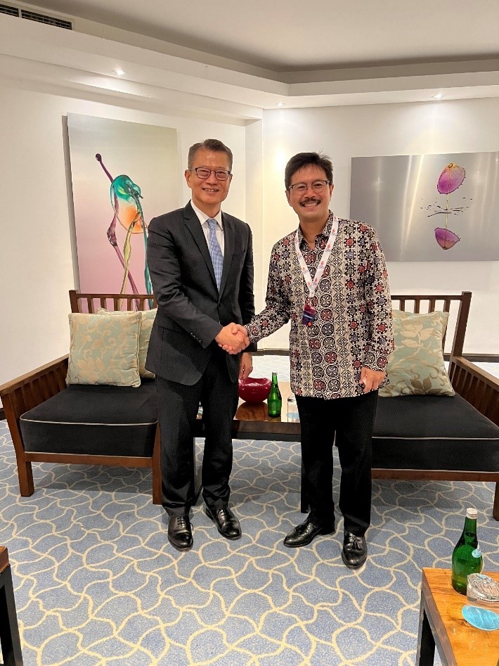 陳茂波也與PT Indonesia Infrastructure Finance行政總裁Reynaldi Hermansjah會面,推介香港優越的營商和投資環境,並討論兩地在發行綠債、基建籌融資等方面的合作機遇。陳茂波亦與在巴厘島的港人茶聚,了解他們的營商和生活情況。