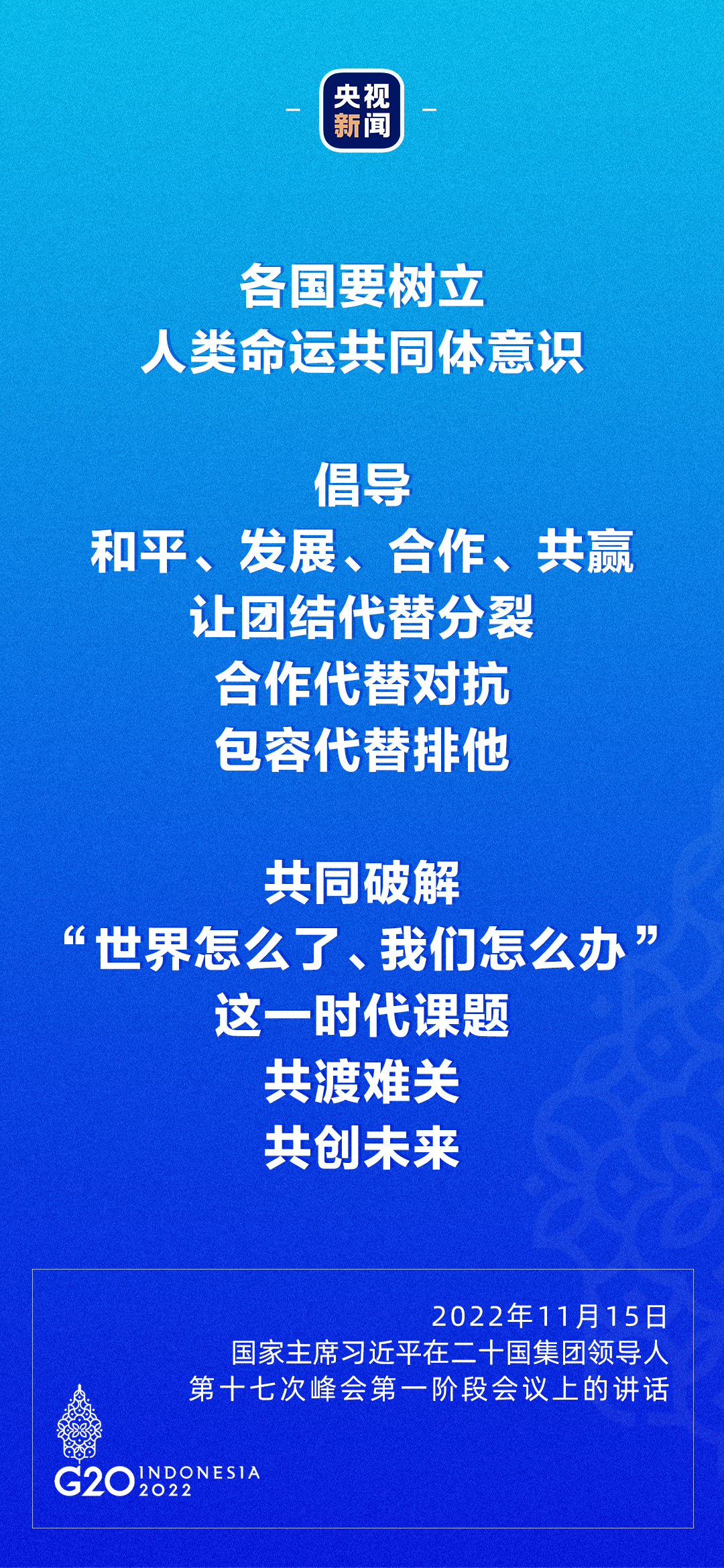 當地時間11月15日,二十國集團領導人第十七次峰會在印度尼西亞巴厘島舉行。國家主席習近平出席並發表題為《共迎時代挑戰 共建美好未來》的重要講話。