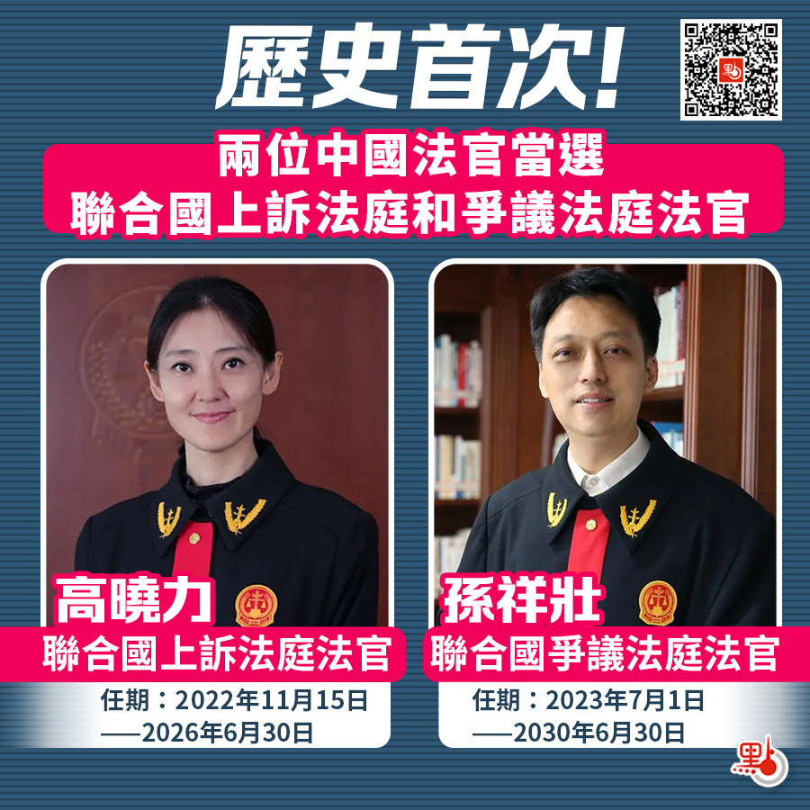 這是聯合國上訴法庭和爭議法庭設立以來,中國候選人首次當選。