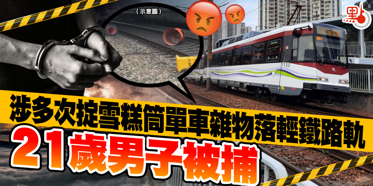 輕鐵職員本月中兩次發現近安定站及屯門泳池站的輕鐵路軌上被人放置雪糕筒、單車及紙皮箱等雜物,影響行車安全。警方昨日上午在現場埋伏監視,目睹一名青年將紙皮箱放在路軌上,於是將他拘捕。初步調查顯示,該名被捕青年涉及區內 4 宗同類案件。