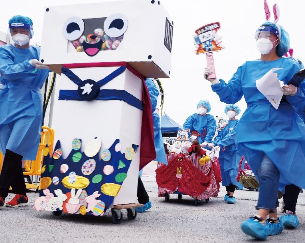 為了令確診人士安心入住六所社區隔離設施,保安局早前設計「方艙俠」作宣傳。懲教主任媒體傳訊組趙駿康回憶與同事合作創作「方艙俠扭蛋機」的經過,他表示「方艙俠扭蛋機」是團隊們幾個同事利用廢料及其他東西一起合力創作而成,復活節當日同事將「方艙俠扭蛋機」推至隔離設施,令隔離中的小朋友感到十分開心,亦讓同事感受到自己的努力是值得的。