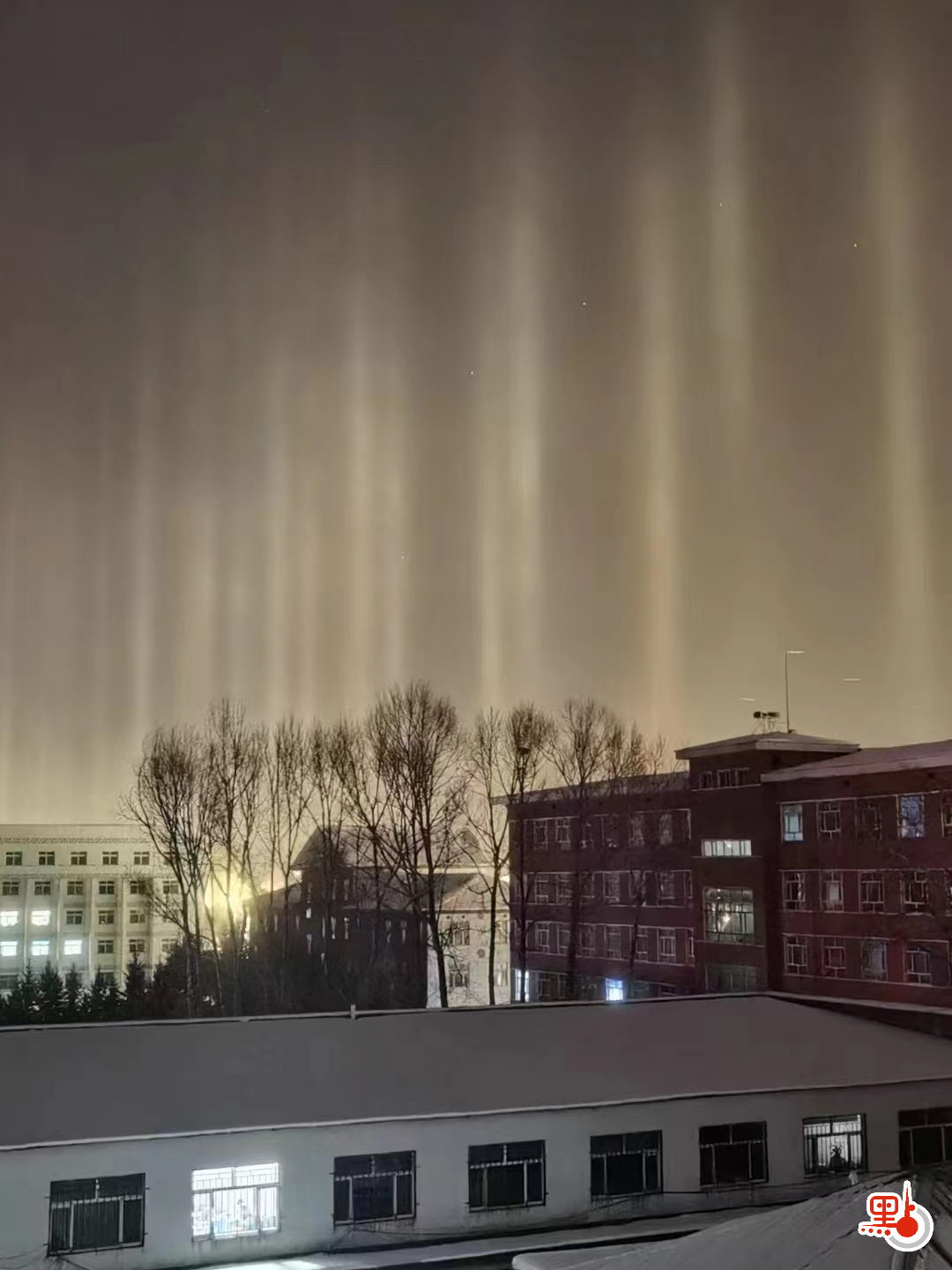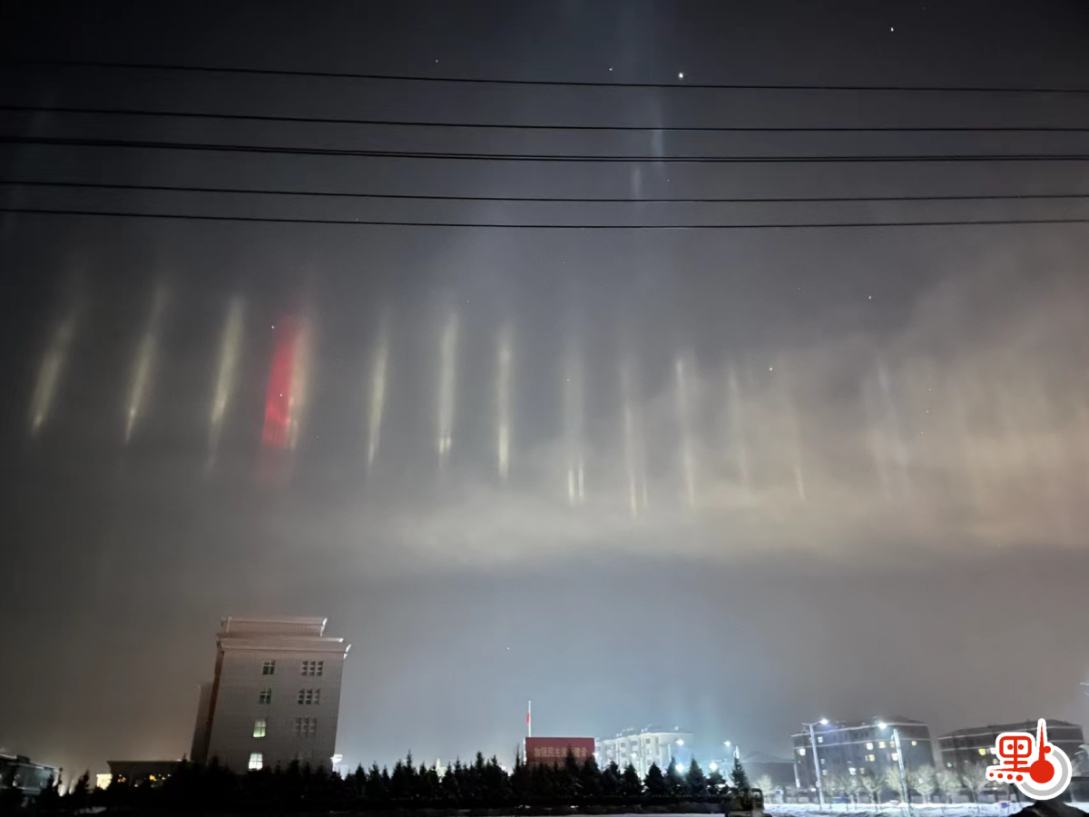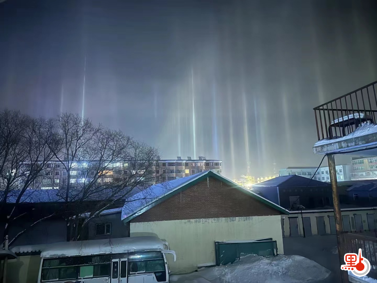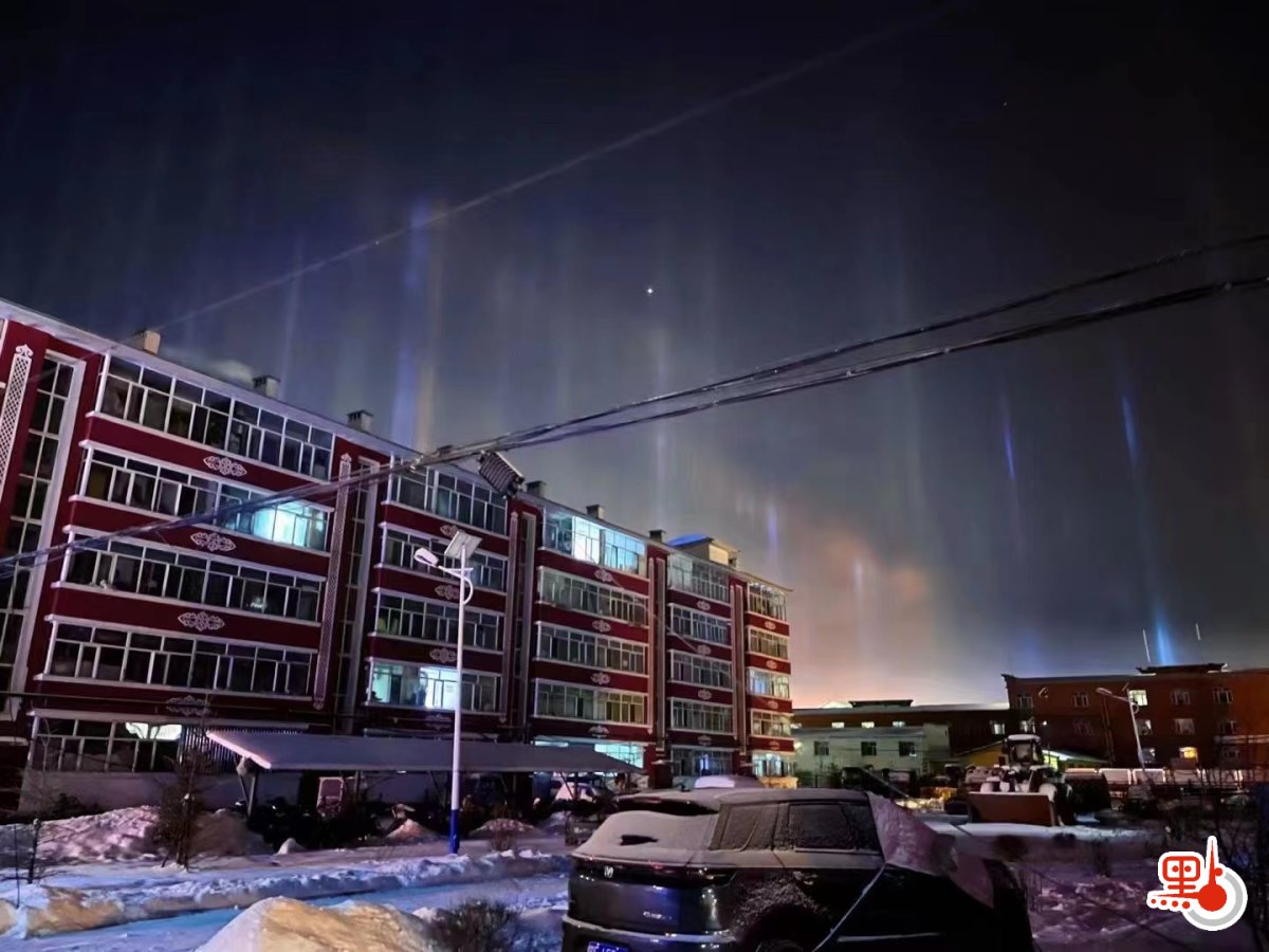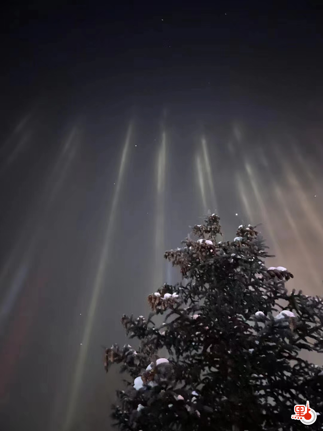 11月27日夜間,內蒙古自治區呼倫貝爾市鄂倫春自治旗阿里河鎮出現神秘的「寒夜光柱」現象,只見一束束形如柱狀的色彩絢麗的光直通夜空,壯觀而又夢幻。