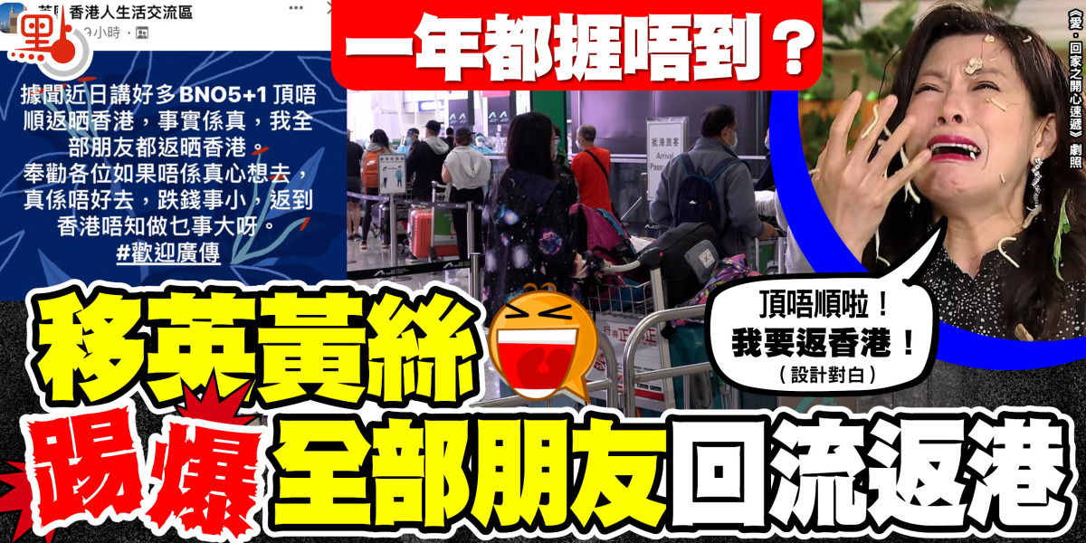 不少持BNO移民英國嘅黃絲以為執到寶,到埗方知只能淪為「二等公民」,加上英國通脹飈升,令生活捉襟見肘,最終悻然離開,回流香港。有移英黃絲近日在社交平台發文話,「據聞近講好多BNO5+1頂唔順返晒香港,事實係真,我全部朋友都返晒香港」,該網民還語重心長咁話「奉勸各位如果唔係真心想去,真係唔好好去,跌錢事小,返到香港唔知做乜事大呀」。