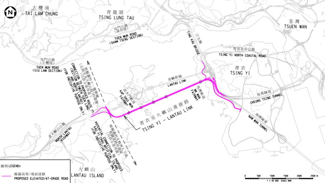 立法會交通事務委員會今日(6日)召開特別會議,討論興建青衣至大嶼山連接路工程,在青嶼幹線南面興建連接路,東端將接駁青沙公路和青衣區內道路,包括青衣北岸公路和青衣西路,西端將接駁計劃興建的十一號幹線、交椅洲人工島相關道路和現有的北大嶼山公路。運輸及物流局根據相關研究,估計研究費用為7.3億元,預計4年內完成相關勘察研究及詳細設計工作,目標2033年或之前分階段完成工程。