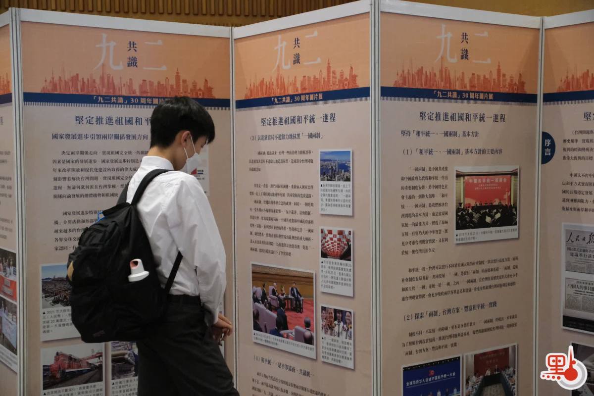 「九二共識」30周年圖片展分為五個部分:一、中央對台方針政策;二、「九二共識」為兩岸協商奠定政治基礎;三、汪辜會談及兩岸兩會協商歷程;四、推動兩岸關係和平發展、融合發展;五、堅定推進祖國和平統一進程。圖片展通過詳細的文字敘述和300多張珍貴圖片,生動再現兩岸關係和平發展歷程。主辦方希望通過展覽,讓香港市民和台灣同胞更多了解「九二共識」歷史事實及其對兩岸關係發展的重要作用。
