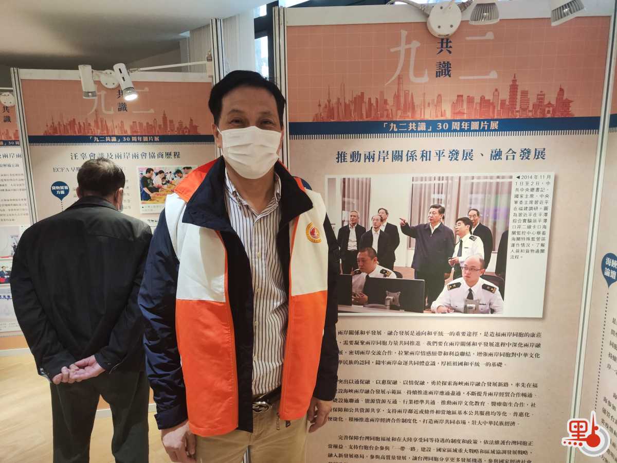 中國和平統一促進會香港總會常務副會長盧金榮表示,今次圖片展吸引了不少年輕人前來觀看,可以學習有關「九二共識」的知識,回顧這段歷史,了解到「九二共識」的核心要義是「海峽兩岸同屬一個中國,共同努力謀求國家統一」。祖國亦不斷推動兩岸關係和平發展、融合發展。他說,國家出台很多措施,便利台灣同胞在大陸的生活,台灣居民居住證有三項權利、六項服務、九項便利,讓台胞生活更加便利,也更有認同感和歸屬感。除此之外,祖國也放寬了台胞個體戶限制,提供更多創業空間。「我們與台灣同胞同根同源,希望能夠早日和平統一。」
