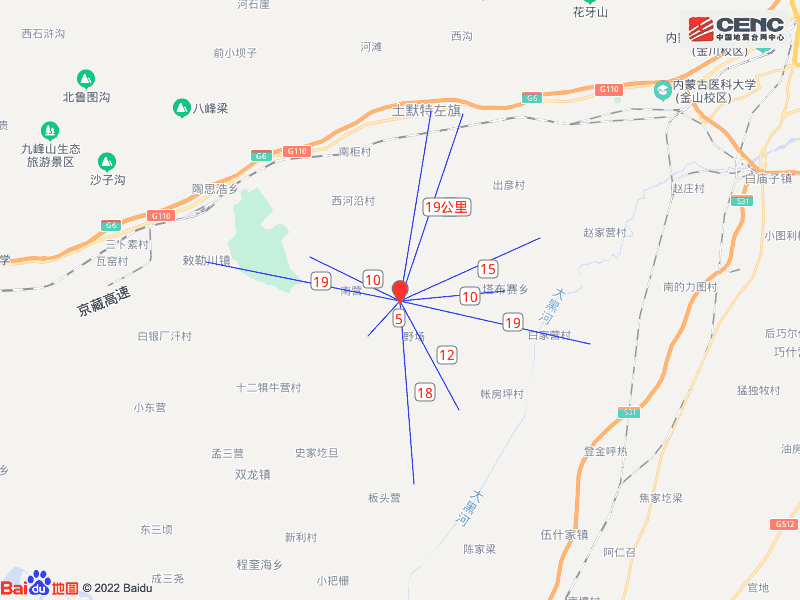 呼和浩特市土默特左旗發生4.1級地震