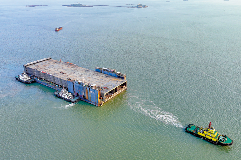 作為繼港珠澳大橋之後又一世界級「橋、島、隧、水下互通」為一體的超級集群工程,深中通道建設又獲新突破。記者10日從廣東省交通集團獲悉,世界首創的深中通道海底沉管隧道整體預製水下推出式最終接頭,及最後一節沉管(E23)鋼殼完成製造,深中通道海底隧道沉管鋼殼製造工作全部完成,於同日出運至珠海桂山島沉管預製智慧工廠進行自密實混凝土澆築及舾裝等施工,計劃在2023年中進行浮運沉放。該項目擬2024年全線建成通車,屆時深圳到中山車程將從現時2小時縮短為20分鐘,大大促進粵港澳大灣區的互聯互通。