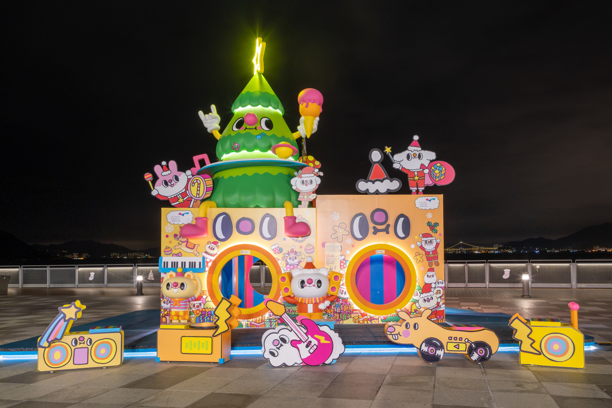 由本地插畫家Messy Desk設計打造的Pop Music Party以流行音樂為主題,混合可愛卡通元素,小朋友可在聖誕樹下的喇叭音箱通道和多款鬼馬「音樂小車」遊玩,趣味十足。
