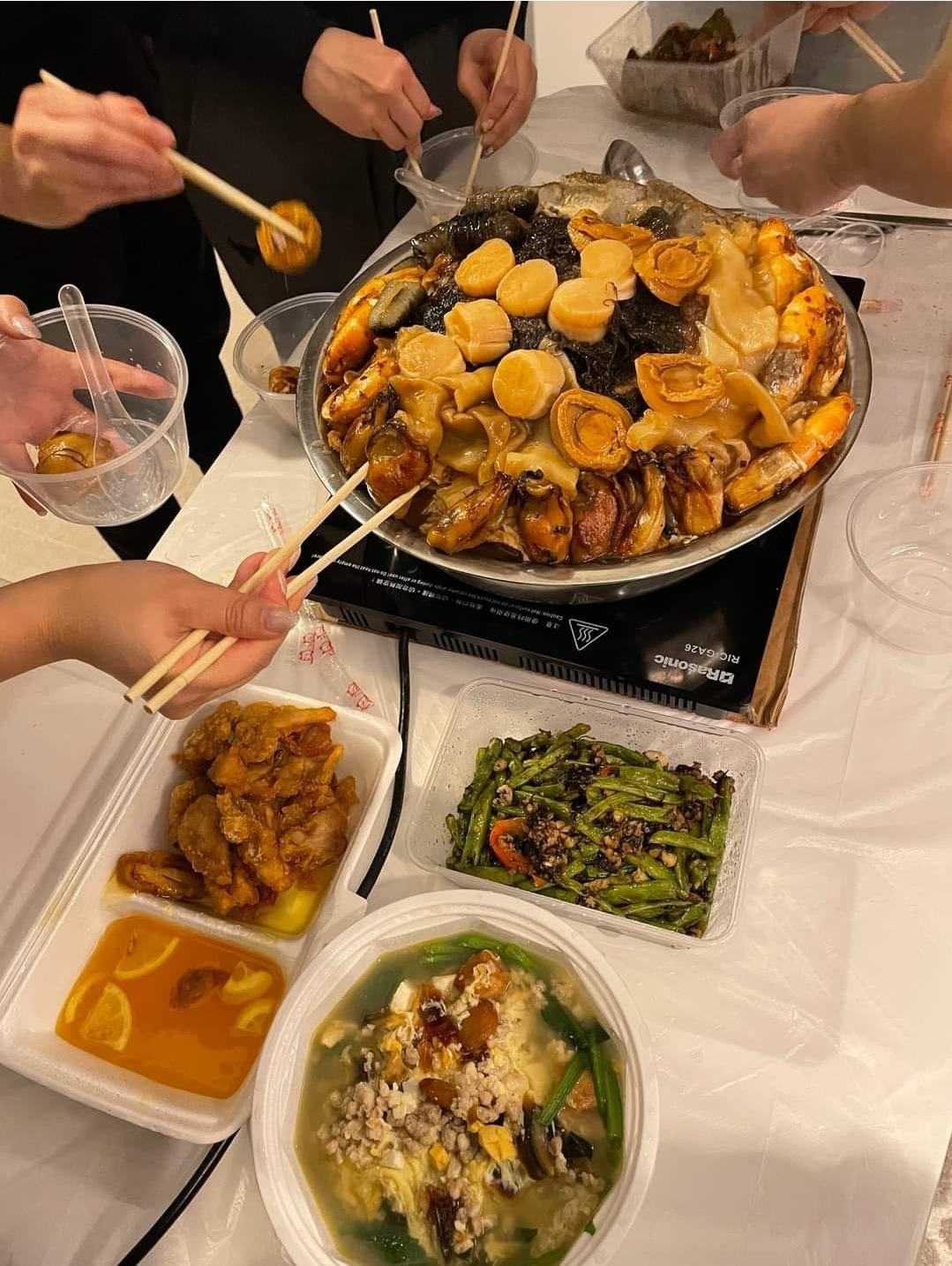 而新派摩登粵菜館唐宮小聚同樣以平價招徠,推出「 聚嘆 ‧ 聚寶盆」,以多款矜貴海味包括鮑魚、瑤柱、花膠、大蝦等入饌。除堂食外,更於12月16日至2月5日期間設有外賣自取服務,讓各位安坐家中亦能樂融融與家人共度佳節。