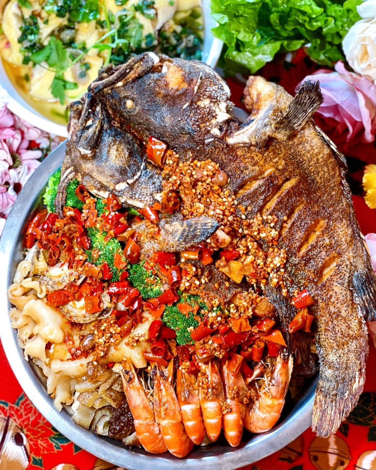 川菜餐廳麻辣小聚今年冬至特地推出麻辣烤魚鮑魚盆菜,發言人指,麻辣烤魚鮑魚盆菜主打食材包括重慶烤魚、韓國鮮鮑魚、生猛海鮮蝦、麻辣小龍蝦和安格斯牛仔肉等。