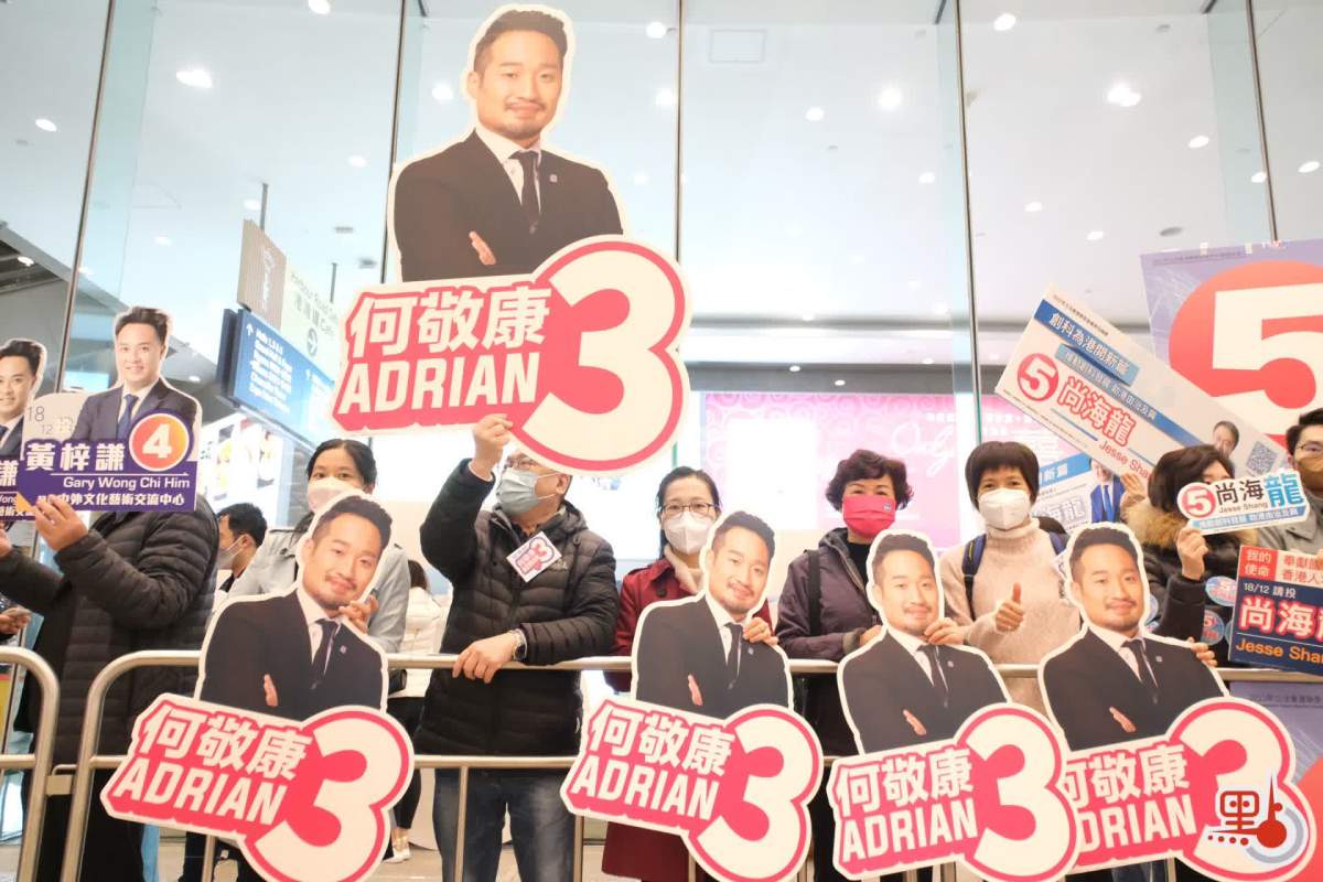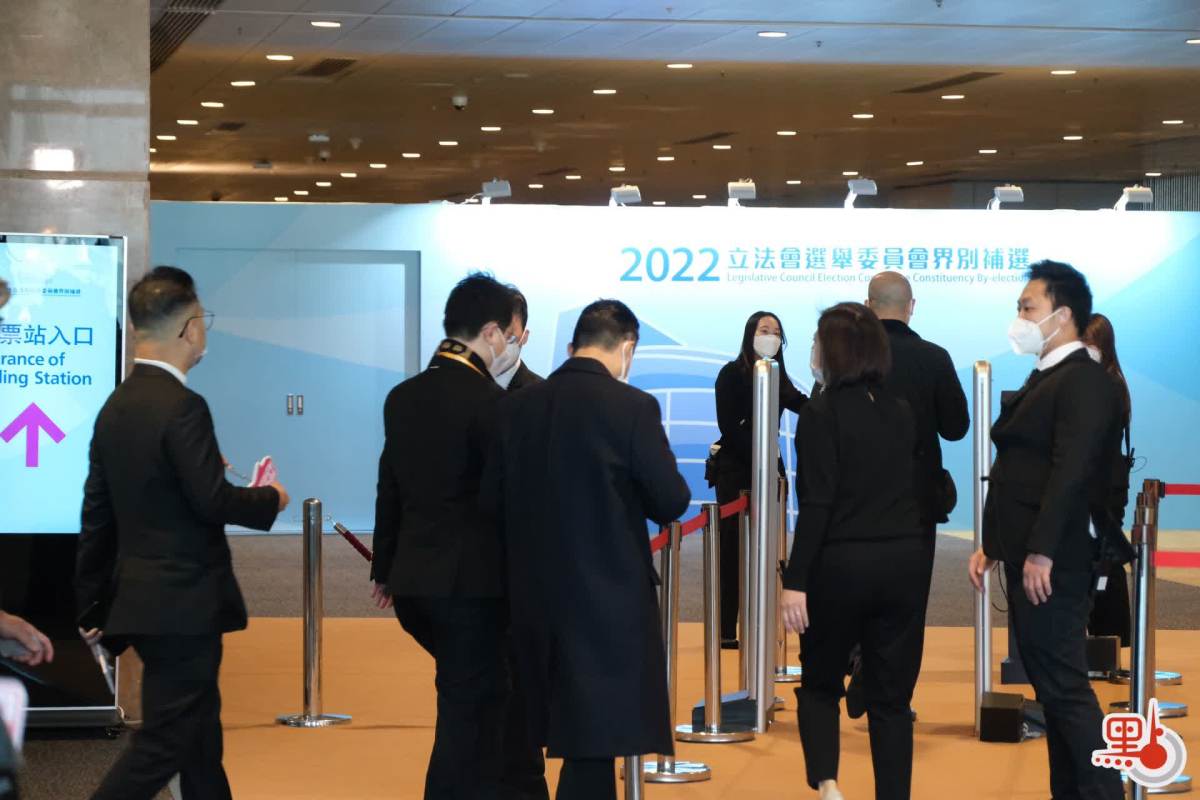 立法會補選投票,多名選委在票站外留影及開始投票。(點新聞記者麥鈞傑攝)