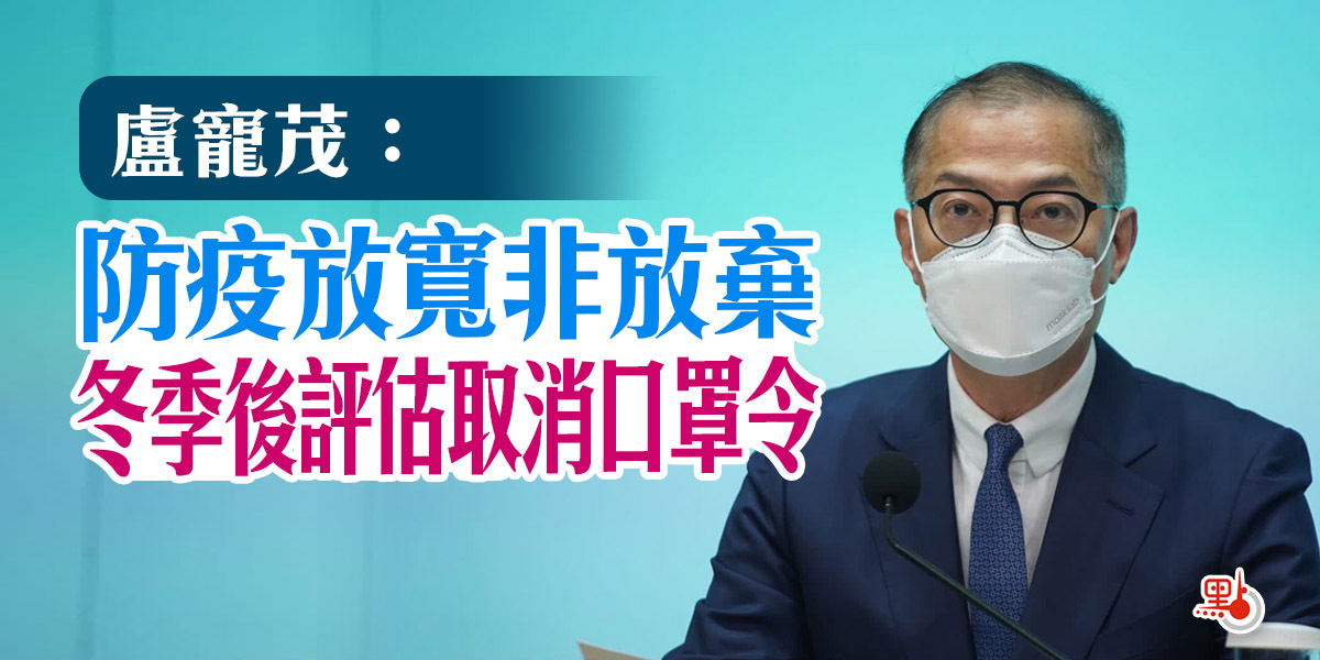 至於何時會取消口罩令,盧寵茂表示,會適時考慮,在冬季後再評估。他說,隨着新冠病毒變異以及本港免疫能力提升,情況與3年前疫情開始時已有差異。本港三針疫苗接種率達到83%,醫療系統韌力亦提高,有信心能夠渡過冬季新冠病毒和流感傳播高峰期。