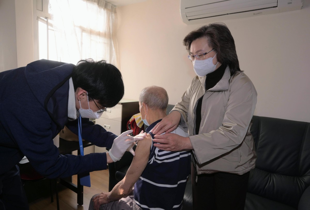 政府推出便利措施如上門接種服務和「即日籌」,以及在交通方便的地點設置接種點,以鼓勵長者接種疫苗。公務員事務局局長楊何蓓茵今日(30日)上午聯同醫護團隊,探訪鴨脷洲利東邨一名從未接種新冠疫苗的88歲長者,視察他透過「疫苗到戶接種服務」接種第一劑復必泰原始病毒株疫苗的流程。