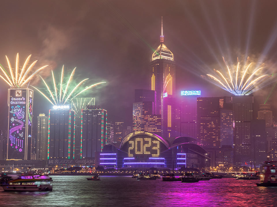會展外牆亦會顯示「2023」字樣及祝福語,為新一年揭開序幕,將祝福送給全球。