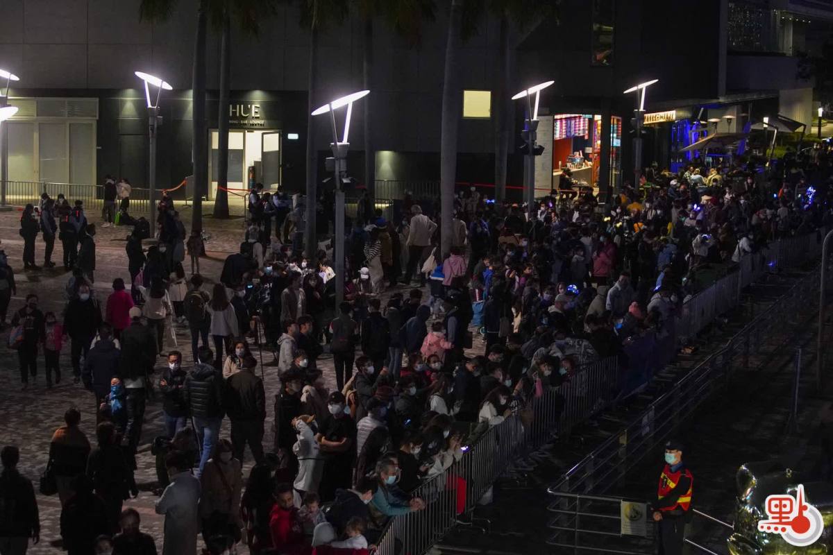 尖沙咀The ONE跨年倒數提供免費小食飲品,不少市民前往等睇午夜加強版幻彩詠香江。