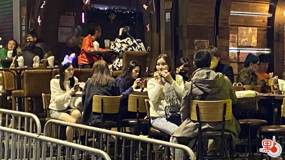 除夕夜,尖東麼地道一帶食肆酒吧高朋滿座。(點新聞記者馮沛賢攝)