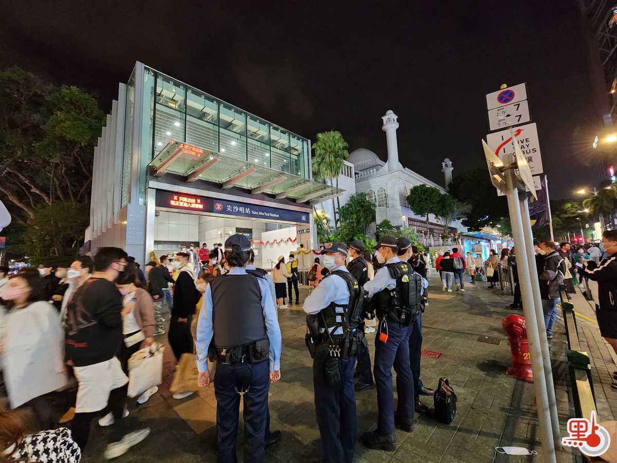 尖沙咀站外,警方在場戒備,現場秩序大致良好。(讀者供圖)