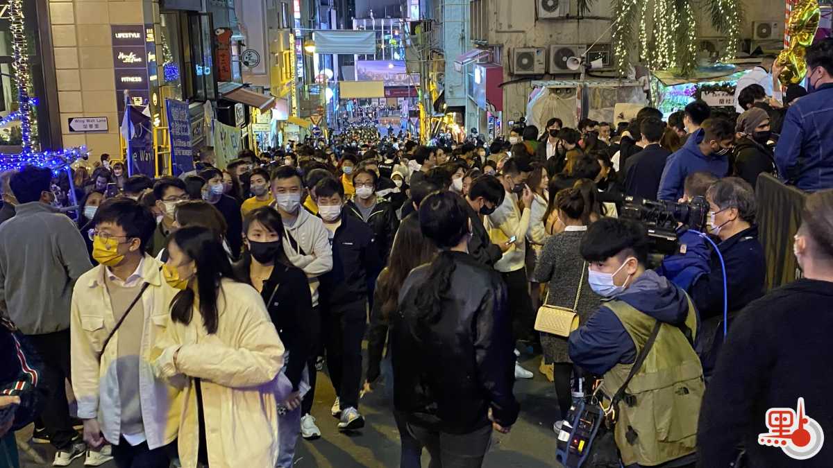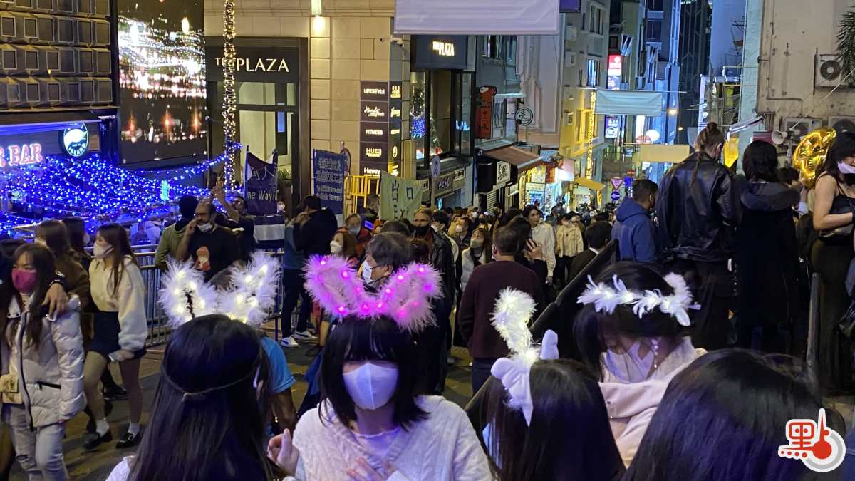 即將到倒數時刻,蘭桂坊聚集越來越多人潮。(點新聞記者任青攝)
