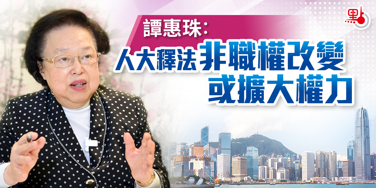十三屆全國人大常委會第三十八次會議2022年12月30日表決通過了《全國人民代表大會常務委員會關於〈中華人民共和國香港特別行政區維護國家安全法〉第十四條和第四十七條的解釋》。基本法委員會副主任譚惠珠今日(1月2日)出席電台節目時表示,釋法並非職權改變或擴大權力,只是對香港國安法第14條和第47條如何使用做出解釋。