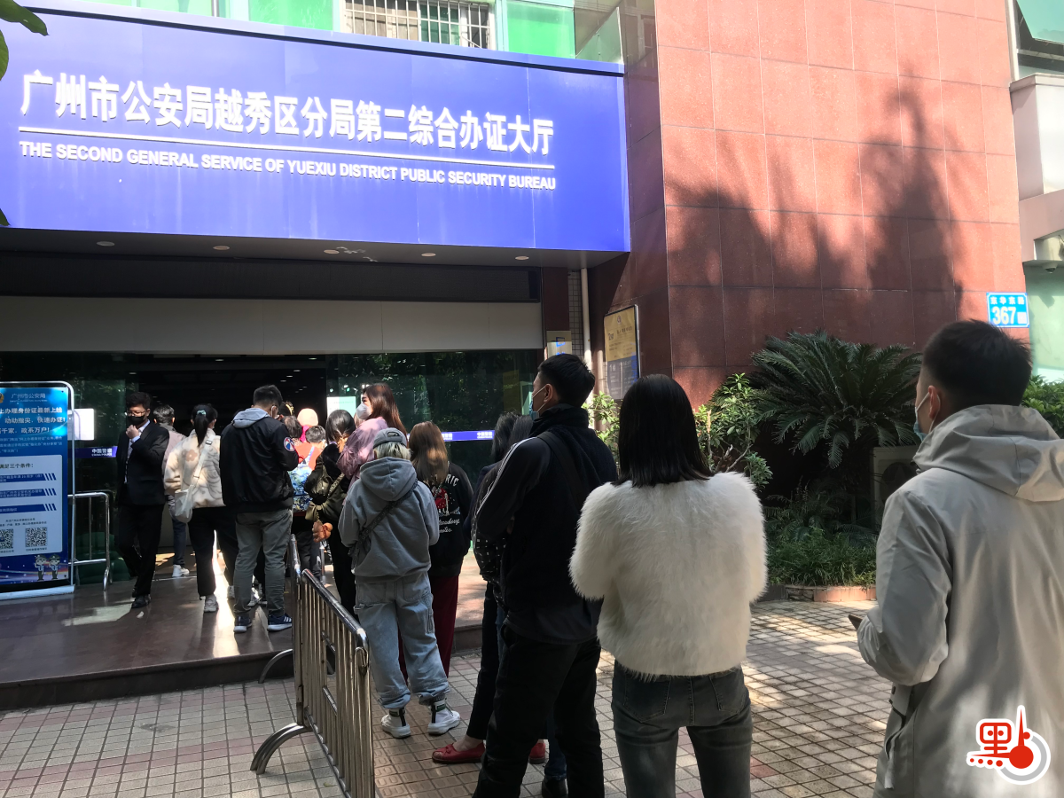 1月5日下午13時,廣州市越秀區出入境辦證中心排起了50多米的長龍,基本都是等待進入自助機「簽注易」續簽澳門自由行的市民。雖然到現場的市民都是辦理澳門簽,但他們聊得最多的,卻是赴港簽注話題。「阿sir,1月8日能恢復香港簽嗎?」、「我想預約赴港游,但不知道下禮拜能不能辦好香港簽」……整個大廳,最為忙碌的就是在現場提供諮詢服務的兩名工作人員。