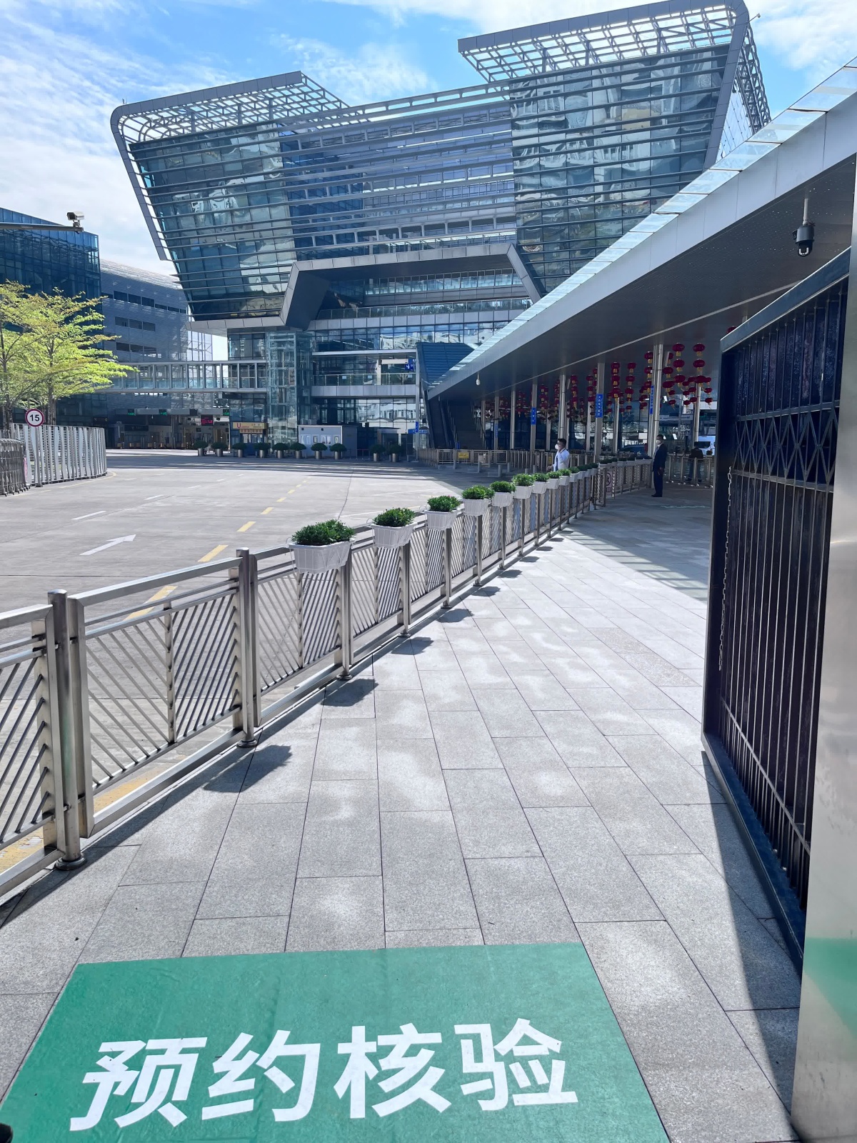 據現場工作人員介紹,裝修工作今日下午將接受深圳市羅湖區區級單位驗收,省市區相關部門在上午及下午陸續到達現場視察口岸準備情況。