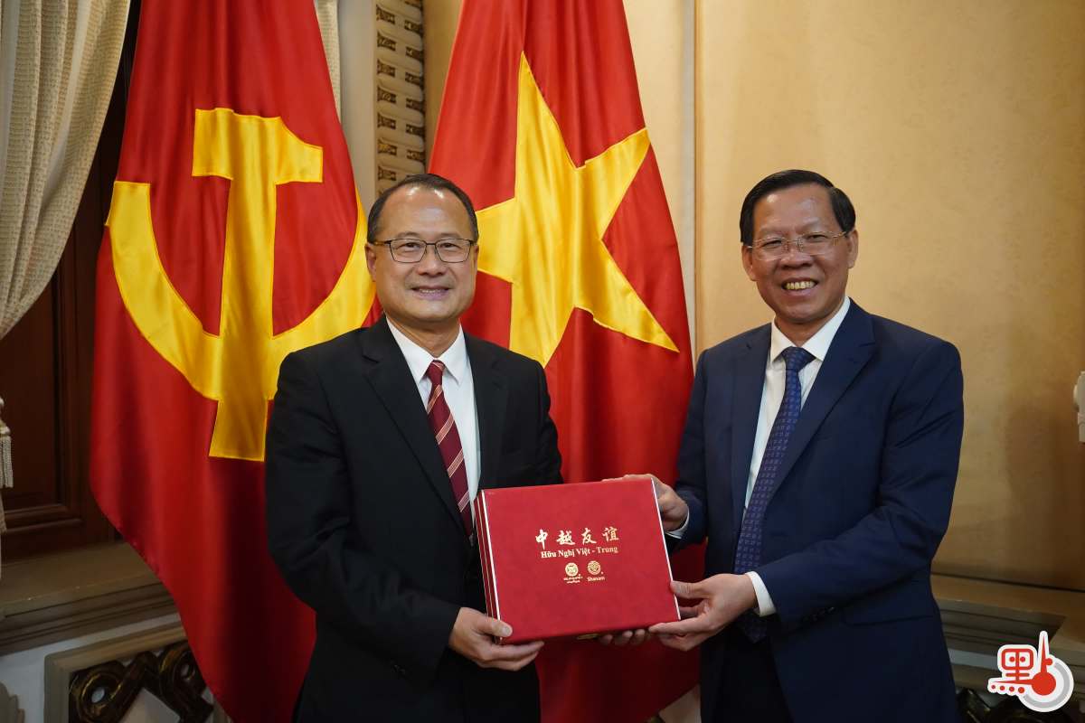 1月12日,香港中華總商會會長、粵港澳大灣區企業家聯盟主席、香港越南商會創會會長、香港新華集團主席蔡冠深博士帶領香港商務代表團、香港科技大學(大學拓展)副校長汪揚教授等先後拜會越共中央委員、胡志明市市委副書記、胡志明市人民委員會主席潘文買,以及中國駐胡志明市總領事魏華祥。