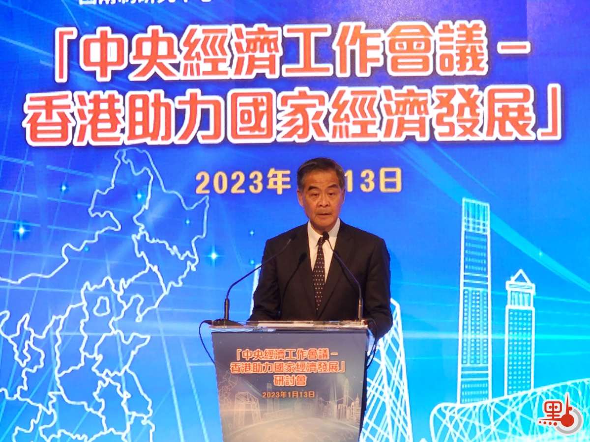 融入國家發展大局基金會和「一國兩制」研究中心今日(13日)聯合舉辦「中央經濟工作會議—香港助力國家經濟發展」研討會。全國政協副主席、前行政長官梁振英致辭時表示,內地房地產市場要有序健康發展,香港應該「有位」,亦可以「有為」。