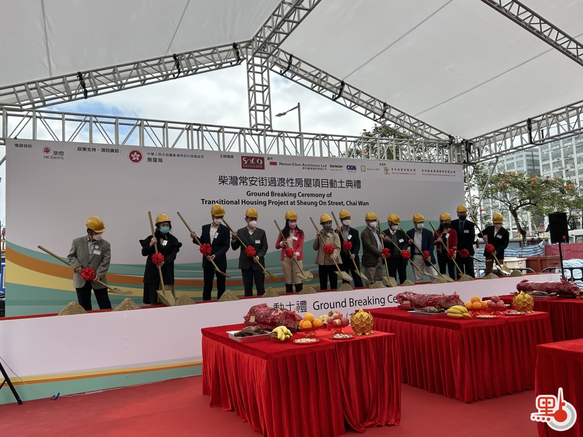 香港社區組織協會獲房屋局資助興建及管運全港首個位於港島的組裝合成法社會房屋今日(14日)舉行動士儀式,預計最快在今年年尾於柴灣常安街提供103個單位,為基層提供罕有的市區過度性住屋應急。房屋局局長何永賢及副局長暨「支援非政府機構推行過渡性房屋項目的資助計劃」評審委員會主席戴尚誠蒞臨主禮。劏房戶亦到場支持,並希望政府繼續支援社會房屋發展。