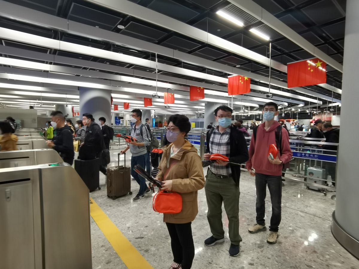 (有片+多圖)高鐵復運 | 廣深港高鐵西九龍站口岸分界線6:30正式開閘