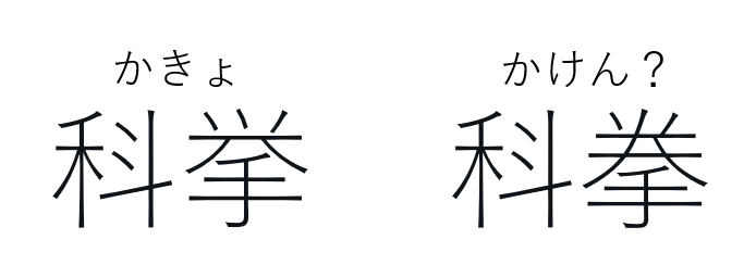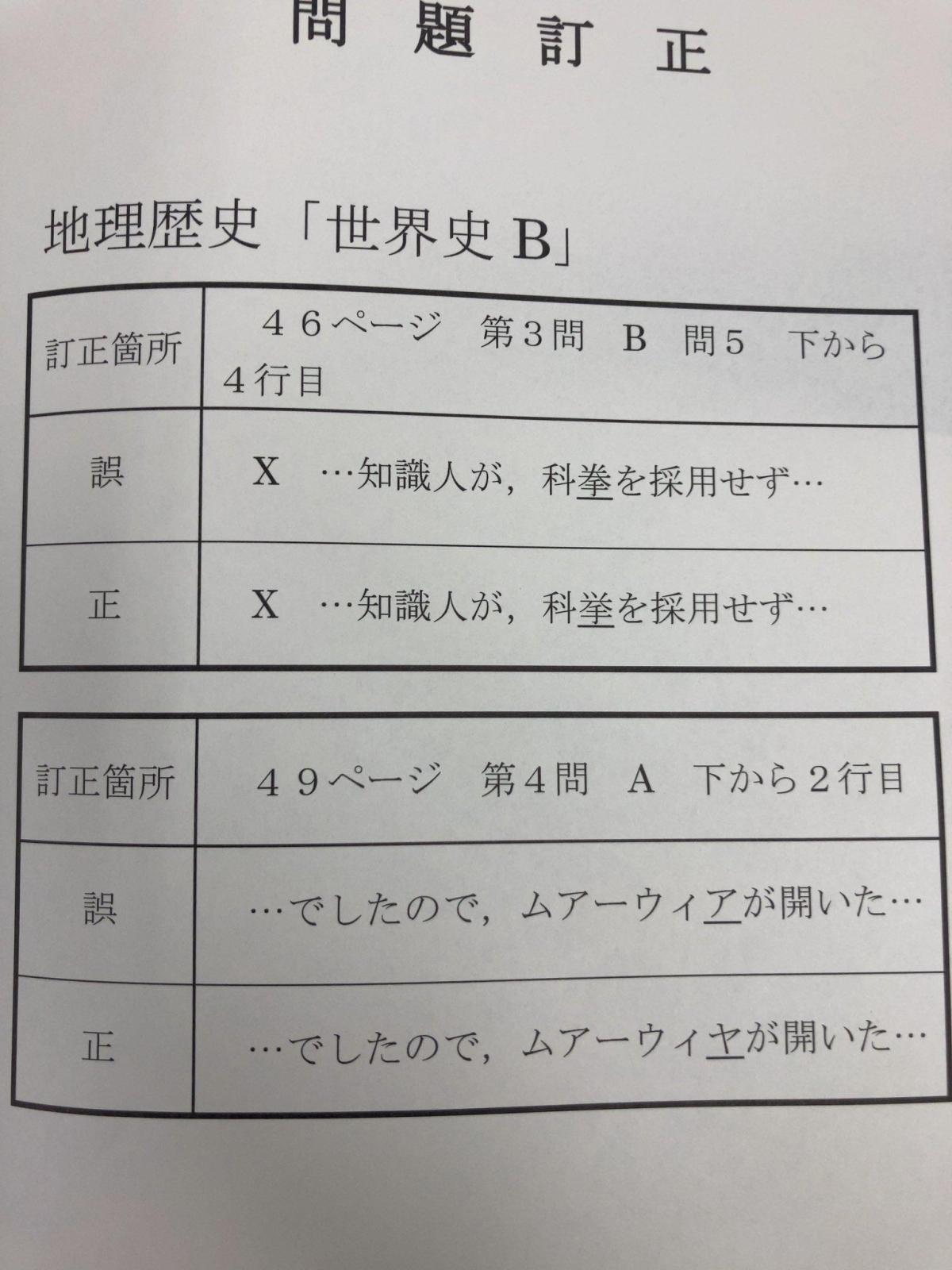 據報道,在14日進行的「世界史B」科目考試開始後,監考人員向考生配發了試題中的問題訂正紙張,列明試題中的「科拳」字樣其實是「科舉」。日本漢字是書寫日語時所使用的漢字,其寫法基本上與現代中文使用的漢字(包括簡化字和繁體字)相似,其中「舉」在日語中寫作「挙」。