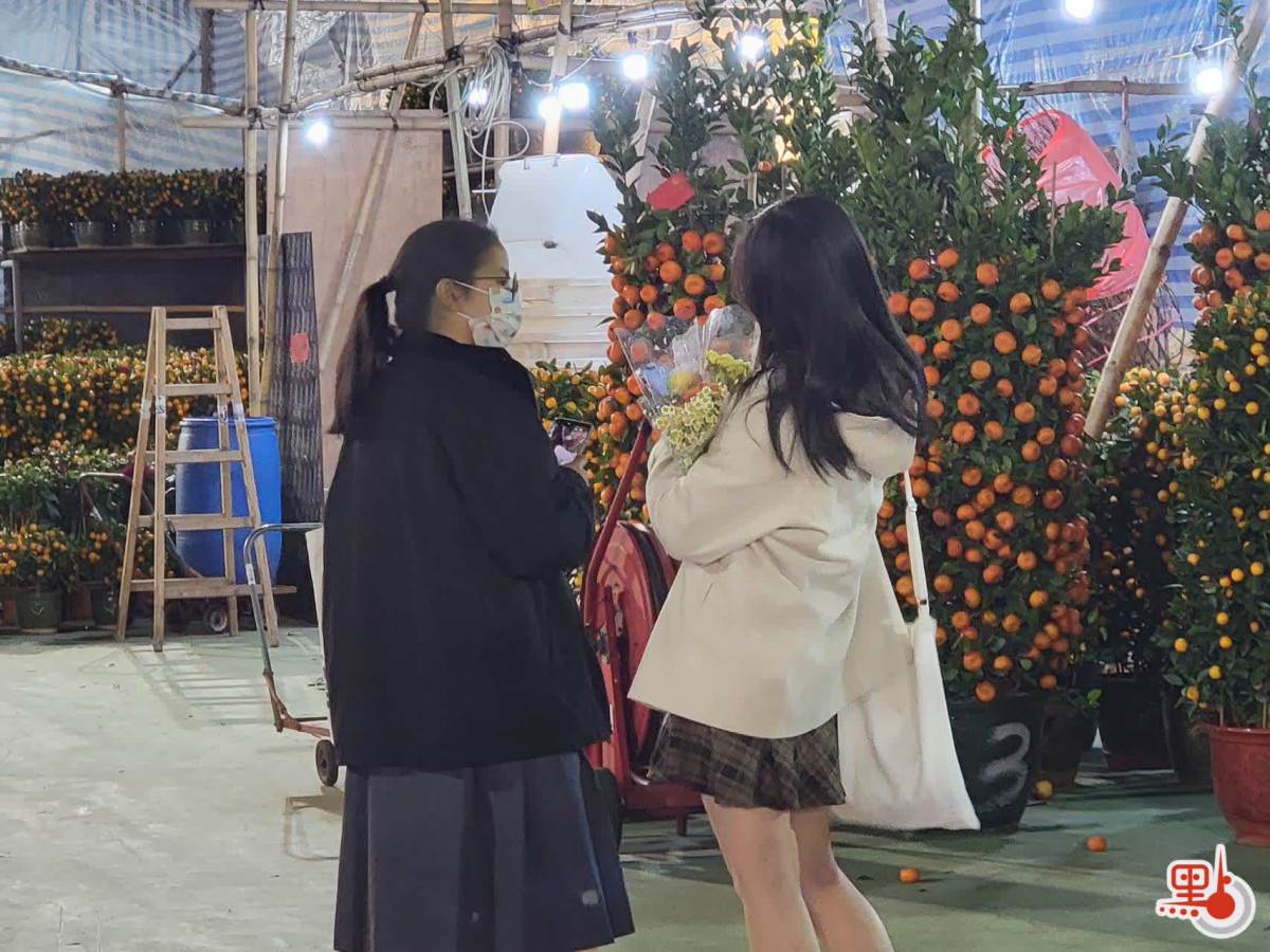 一名女同學向記者表示,晚飯後與朋友一起行街,碰巧行經沙咀道才得悉今天是花市首日,她用了100元買花,雖然天氣有點冷,現場氣氛比較冷清,人流不多反而給人很舒服的感覺,笑言「不用迫行得好開心」。