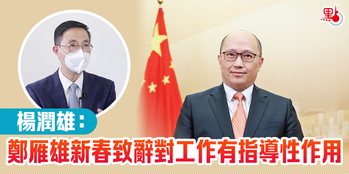 香港中聯辦主任鄭雁雄早前在線發表2023年新春致辭,表示「由治及興」是習近平主席對香港的殷切期盼,也是所有香港居民的共同願望。中聯辦和大家一樣倍加珍惜香港當前「治」的局面,熱切期望香港增強「興」的動能,進一步開創「由治及興」新局面。文化體育及旅遊局局長楊潤雄今日(17日)接受點新聞記者訪問時表示,鄭雁雄主任對香港十分了解,他在致辭中提出的多個重點,對特區政府工作有指導性的作用。