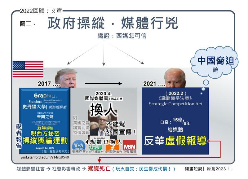 最具權威的傳統西方媒體近年公信力插水:(1)特朗普政府被學者發現持續五年來利用傳媒造假;(2)換走媒體高層只因他們為中國說真話(武漢初期對肺炎的處理);(3)拜登政府則推《戰略競爭法案》,再來五年花15億美元給媒體進行反華虛假報道。