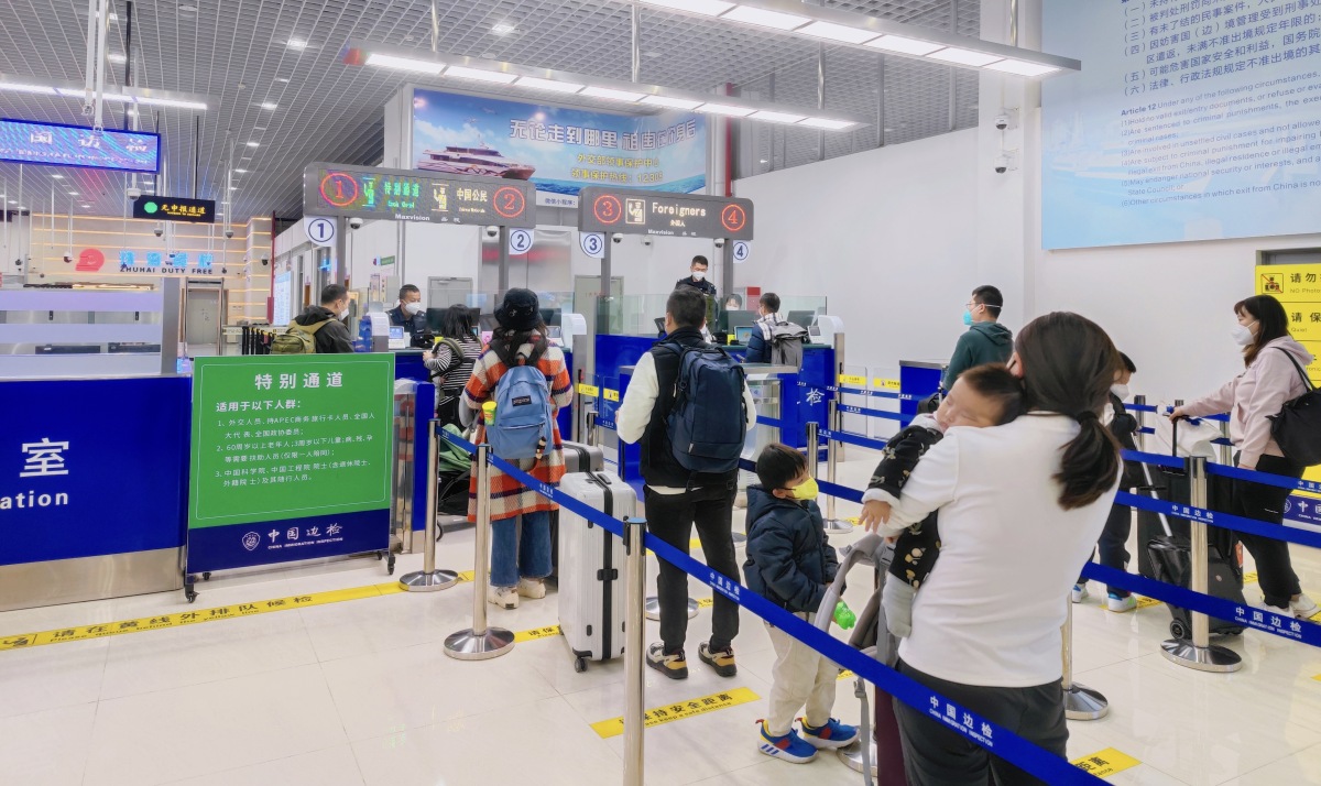 面對春節假期出入境雙向客流的迅速增加,九洲邊檢站備足警力、開足通道,優化勤務組織,提高查驗效率,確保中國公民出入境通關排隊不超過30分鐘。